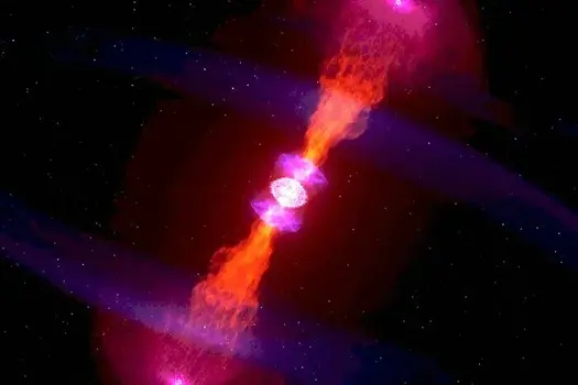 Подобно фигуристу, который ускоряет вращение, прижимая руки к телу, пульсар получает свою головокружительную скорость в результате сжатия. Когда массивная звезда коллапсирует в нейтронную звезду, она сохраняет большую часть своей массы, но сжимается до крошечного – относительно исходного – размера. При этом сохраняется и момент импульса звезды. В результате такого экстремального сжатия огромной массы она начинает вращаться с колоссальной скоростью.
