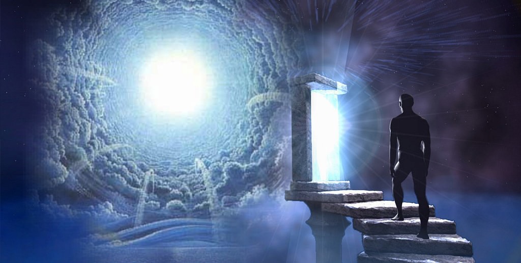 После душа переходит духовный мир. Многие описывают этот переход, как путешествие по темному туннелю, в конце которого виднеется свет. По мере приближения свет становится более ярким и увеличивается. От него веет добром. Христиане отождествляют этот свет с Христом, сказавшим: «Я свет миру». Свет беседует с душой путем мысли и от него ничего нельзя утаить. Перед духовным взором человека проходит его земная жизнь. Он просматривает ее словно на кинопленке детально и отчетливо в виде быстро сменяющихся жизненных эпизодов. Душа снова переживает и морально переоценивает все свои поступки. Этот просмотр всегда оставляет в душе глубокий и благотворный след. Это похоже на суд человека над собой, точнее суд его ожившей совести.