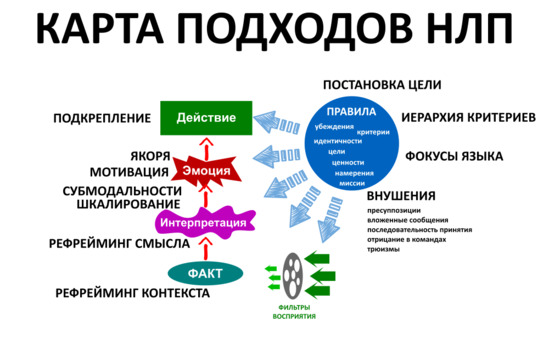 Также НЛП помогает оформлять речь в определенные рамки или фреймы, чтобы донести мысль до собеседника в той форме, к которой он привык, и ему не пришлось вникать в иную картину мира или систему ценностей.