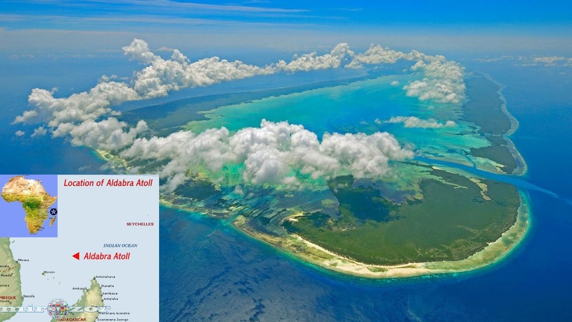 Атолл Альдабра, расположенный на западе Индийского океана в 400 км к северо-западу от Мадагаскара, – один из самых знаменитых океанических островов. Вместе с несколькими близлежащими островами – коралловым островом Ассампшен и атоллами Астов и Космоледо – он образует группу островов Альдабра. Несмотря на географическую близость к Мадагаскару и Коморам, вся эта группа принадлежит Республике Сейшельские Острова.