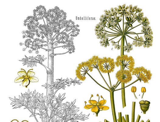 Как выглядело это легендарное растение? Современные ботаники относят его к роду ферула, семейство зонтичные. Судя по изображениям и описаниям, больше всего оно напоминало асафетиду, которая и сейчас растёт в тех же краях. Римляне о ней знали и также применяли в качестве приправы, но она считалась всего лишь дешёвым суррогатом сильфия, не обладая к тому же контрацептивными свойствами.